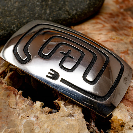 Silver Belt Buckle "Bear Claw Clan People Follow Hopi" | Anderson Koinva