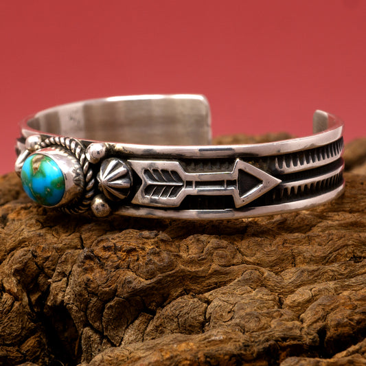 Royston Turquoise Handstamped/Overlay Silver Cuff Bracelet | A. Jake