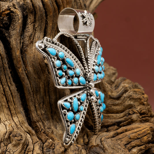 Silver Butterfly Pendant with Sleeping Beauty Turquoise Mini Cabochons