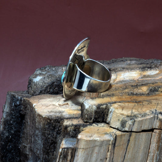 Royston Turquoise & Sterling Silver Ring by Tommy Jackson Size 12