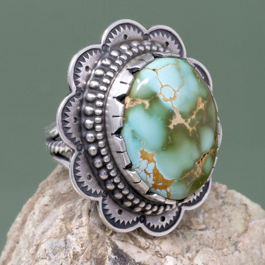 Royston Turquoise Stamped Setting Ring by Chris Billie | Size 9.5
