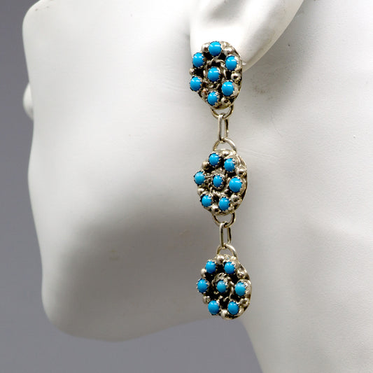 Sleeping Beauty Turquoise Earrings - Three Circles with Nine Cabochon Each