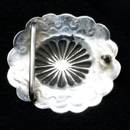 Small Royston Turquoise Stamped Silver Belt Buckle