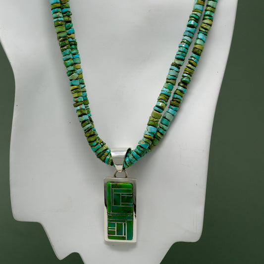 Sonoran Gold Beaded Necklace with Mosiac Lapidary Pendant | Tommy Jackson