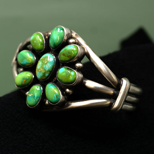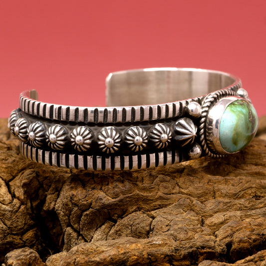 Sonoran Gold Turquoise Hand-stamped and Overlay Silver Cuff Bracelet