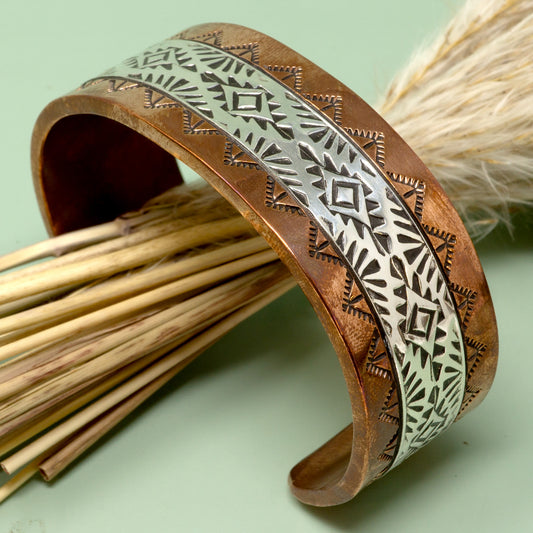 Stamped Copper & Sterling Silver Cuff Bracelet | 1" Width