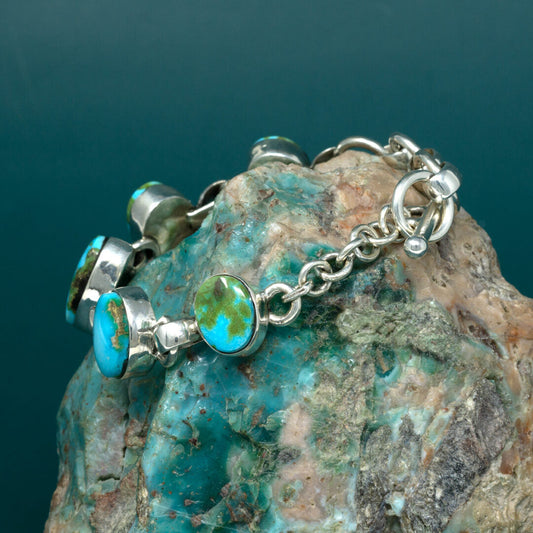 Sonoran Gold Turquoise Cabochon Polished Silver Linked Bracelet