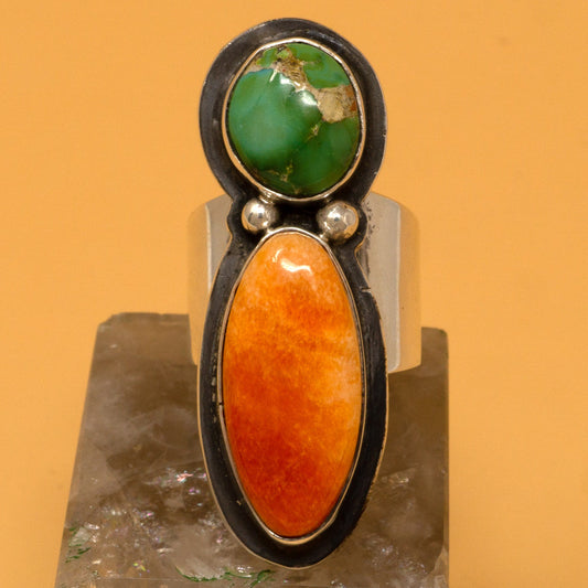 Sonoran Gold Turquoise & Spiny Oyster Ring Silver Ring by Tommy Jackson | Size 7