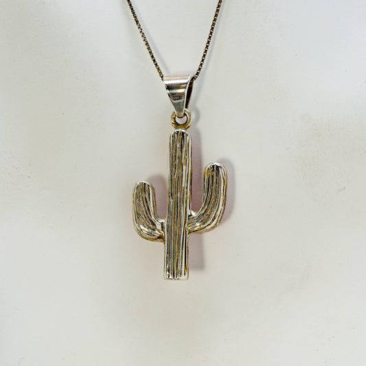 Coral Cactus/Saguaro and Sterling Silver Necklace on 18-inch-chain