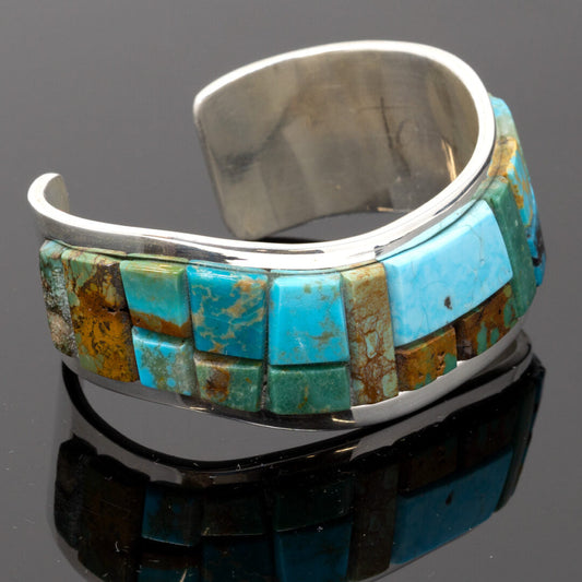 Large Morenci Turquoise Overlay Cuff Bracelet by Tommy Jackson