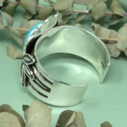 Morenci Turquoise Stamped Setting Cuff Bracelet by Tommy Jackson