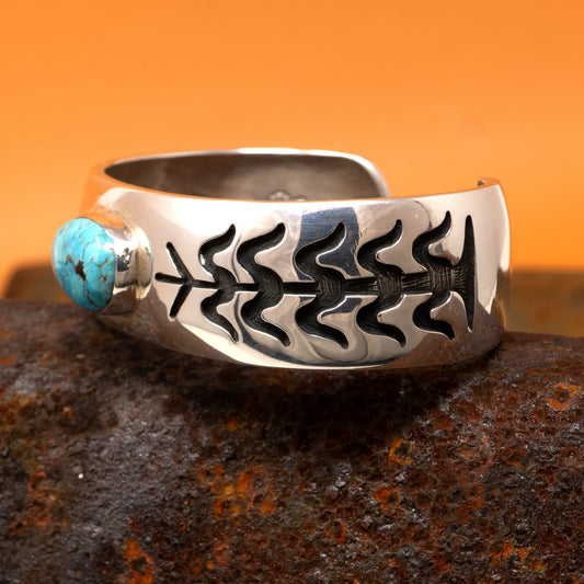 Apache Blue Turquoise in Stamped Silver Cuff Bracelet | Bo Reeves