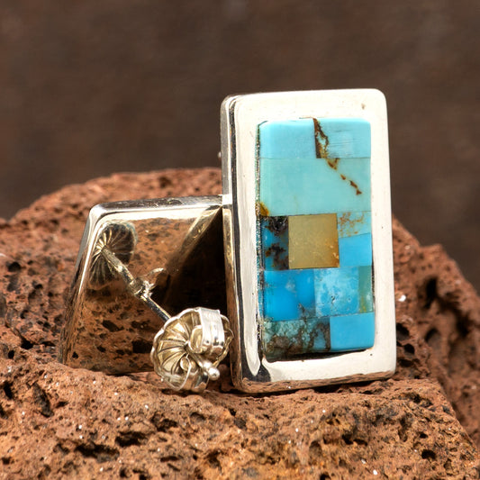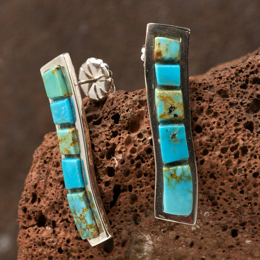 Zuni Inlay Earrings with Kingman Turquoise in Sterling Silver