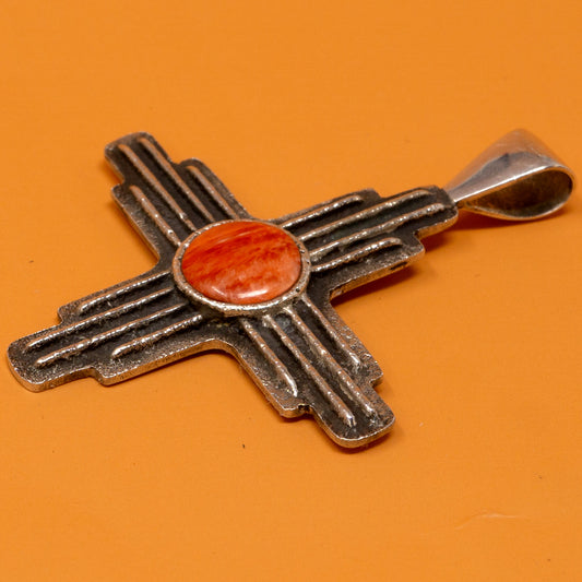 Cast Silver Zia Symbol Pendant with Spiny Oyster Shell