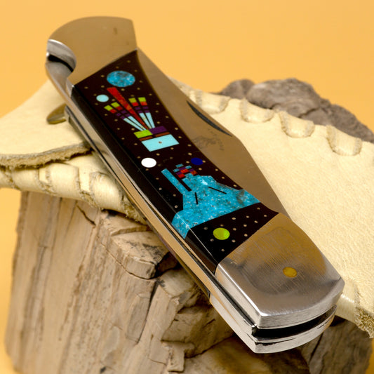 5 inch Pocketknife with Multistone Mosaic Inlay by Sylvana Apache