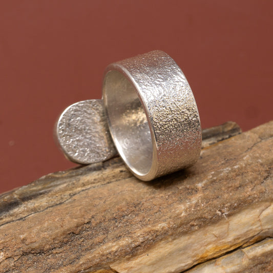 Indian Mountain Turquoise Ring Wide Overlay Silver Band Size 10.5 | Tommy Jackson