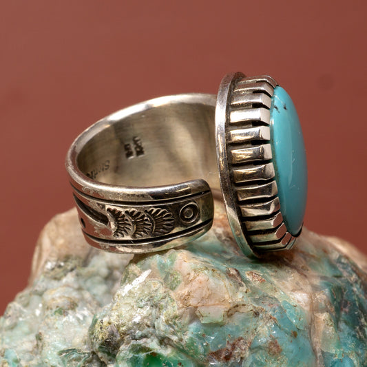 Turquoise Silver Ring Classic Setting by Tommy Jackson | Size 7.75