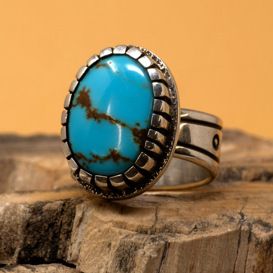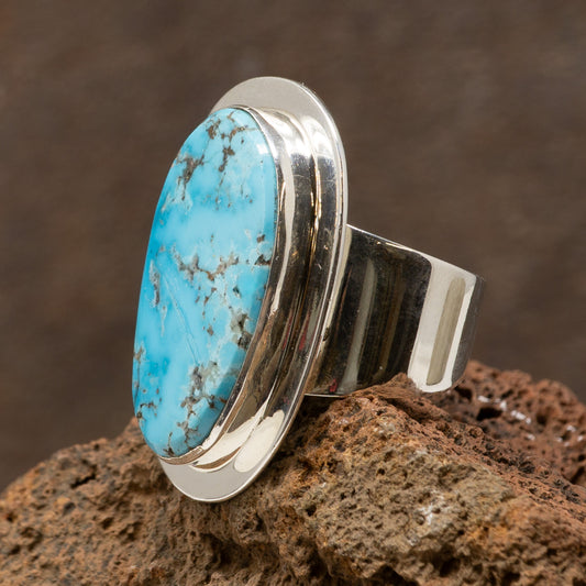 Morenci Turquoise Ring | Modern Oval Setting with Heavy Band | Size 9.5