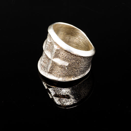Cast Sterling Silver Ring with Cross and Heart Design | Size 8.75