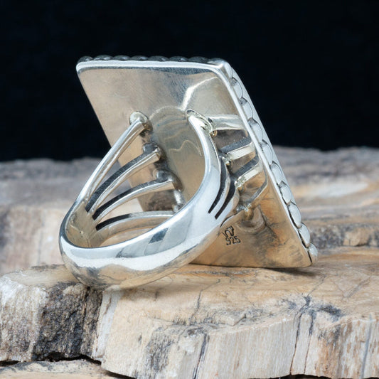 Kingman Turquoise & Sterling Silver Large Rectangle Ring Size 7.5