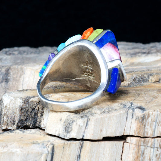 Turquoise Lapis Amethyst Zuni Lapidary Rectangle Ring by Touch of Santa FE | Size 6.5