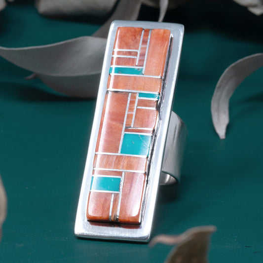Kingman Turquoise & Spiny Oyster Inlay Ring by Marie & Tommy Jackson