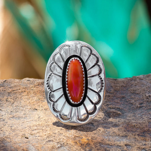 Coral & Stamped Sterling Silver Ring by Danny Jackson Size 9