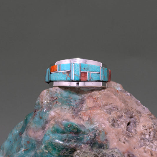 Zuni Multi-Stone Inlay Square Band Ring Size 9.25