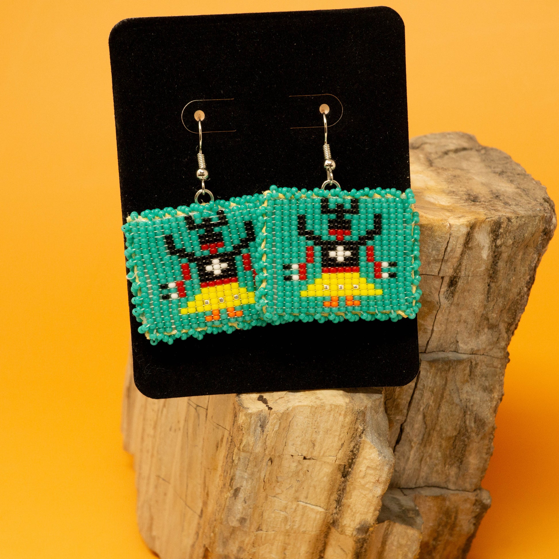Apache Crown Dancer Hand beaded Teal Square Earrings