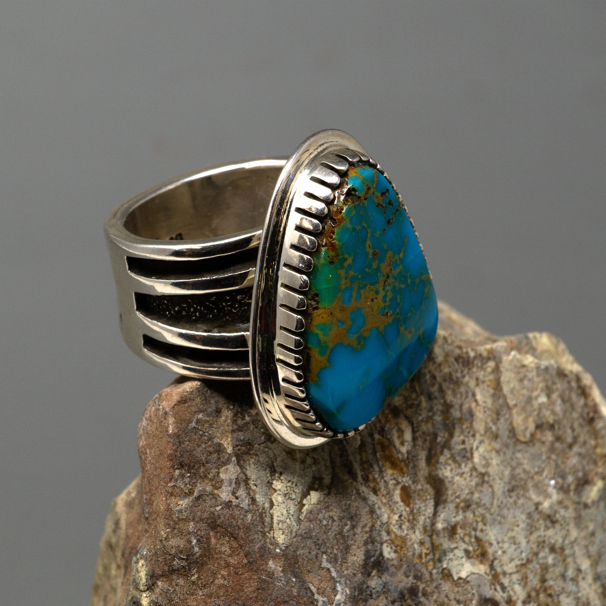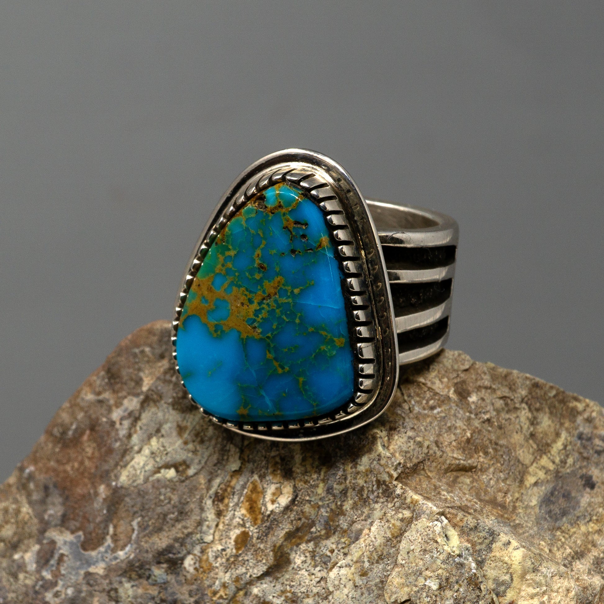 Blue Gem Turquoise in Overlayed Sterling Silver Ring By Tommy Jackson