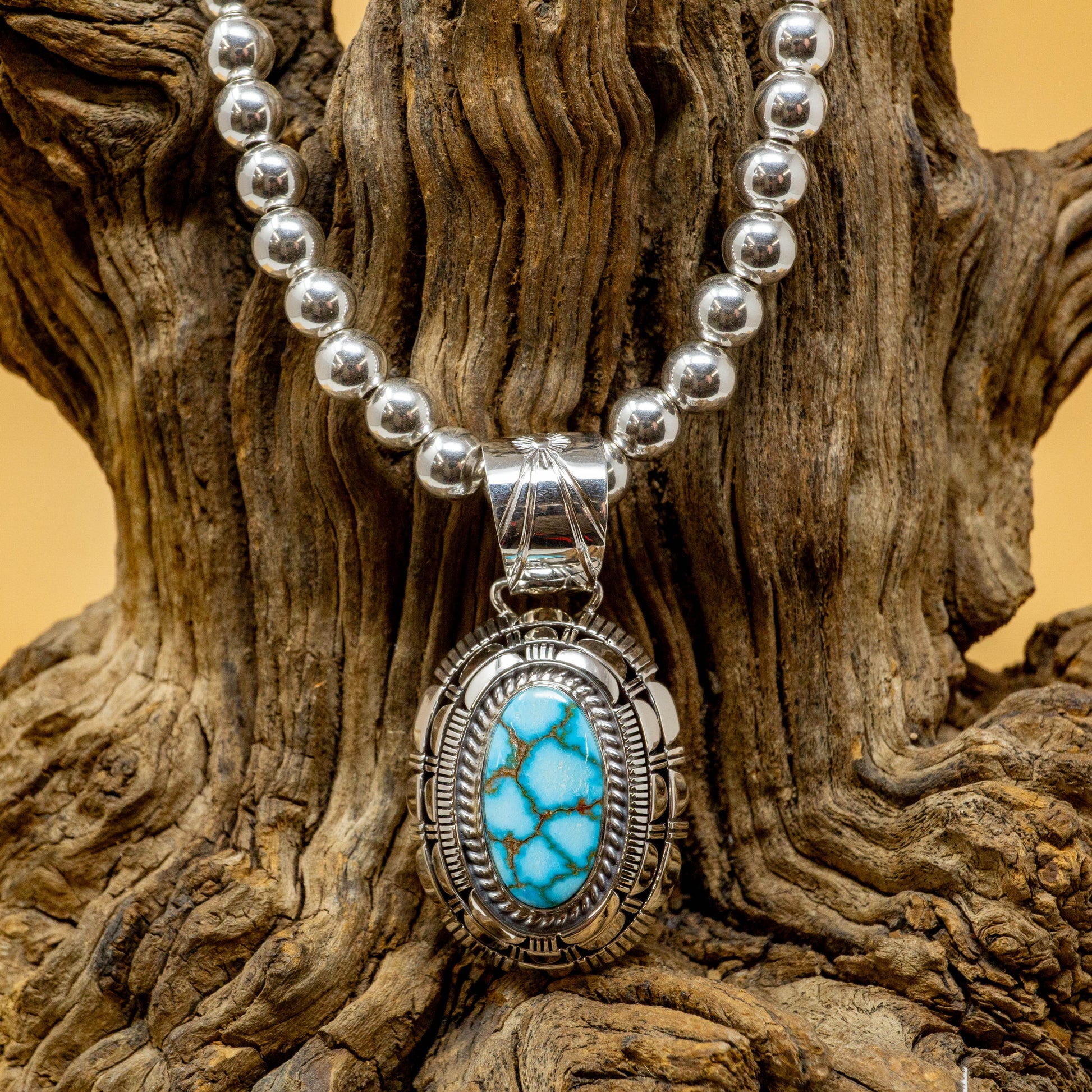 High Grade Kingman Turquoise set in Sterling Silver with Navajo Pearls