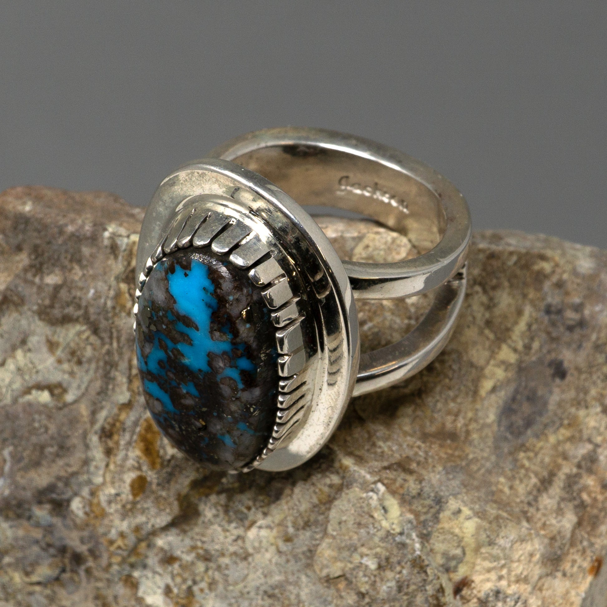 High-grade Morenci Turquoise in Polished Silver Ring by Marie Jackson | Size 9.5