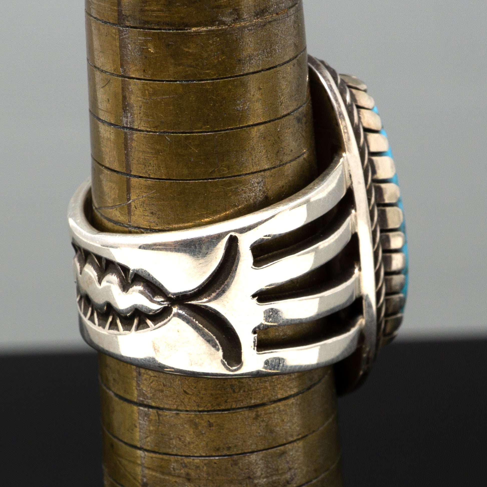 Indian Mountain Turquoise Ring Wide Overlay Silver Band Size 10.5 | Tommy Jackson