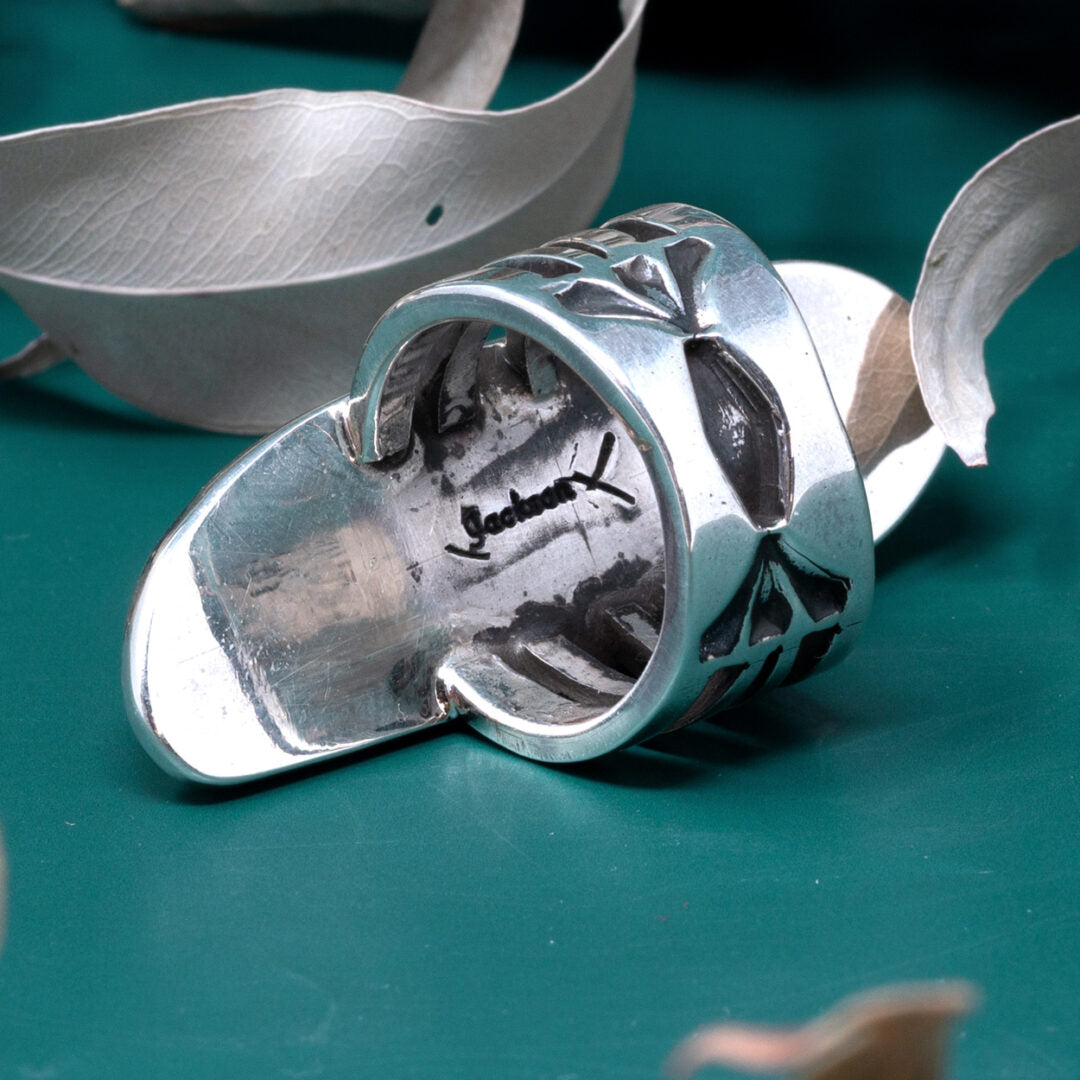 Navajo silversmith Marie Jackson was born in Ganado, Arizona. Marie got her start as an artist after she was exposed to demonstrations of Navajo rug weaving. Her husband, Internationally known Navajo jewelry designer Tommy Jackson was born in Phoenix, Arizona, in January of 1958Â and learned the art of silversmithing from his parents, Martha and Gene Jackson while growing up in Chinle, Arizona. Together they create beautifully hand-crafted pieces of art using various techniques.
