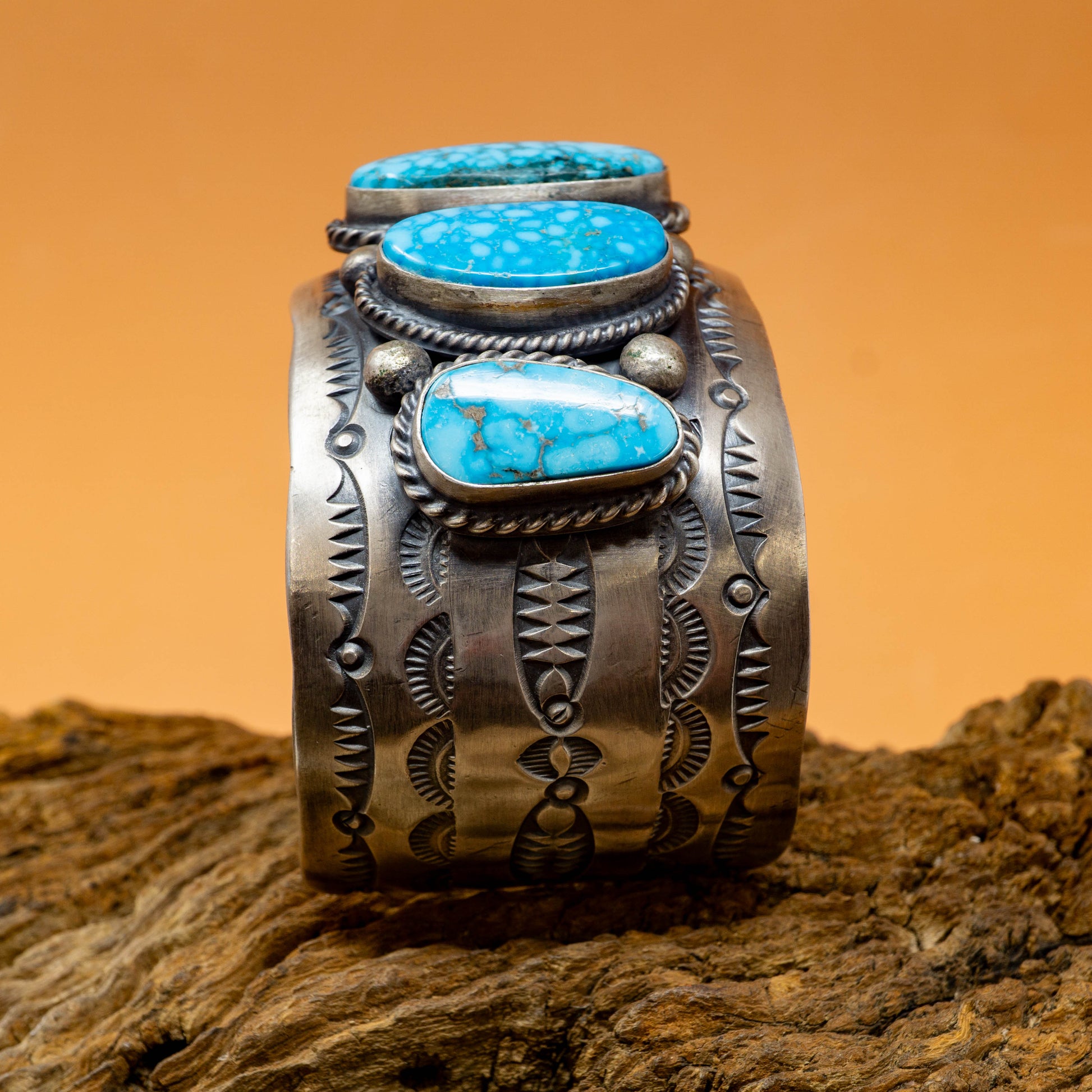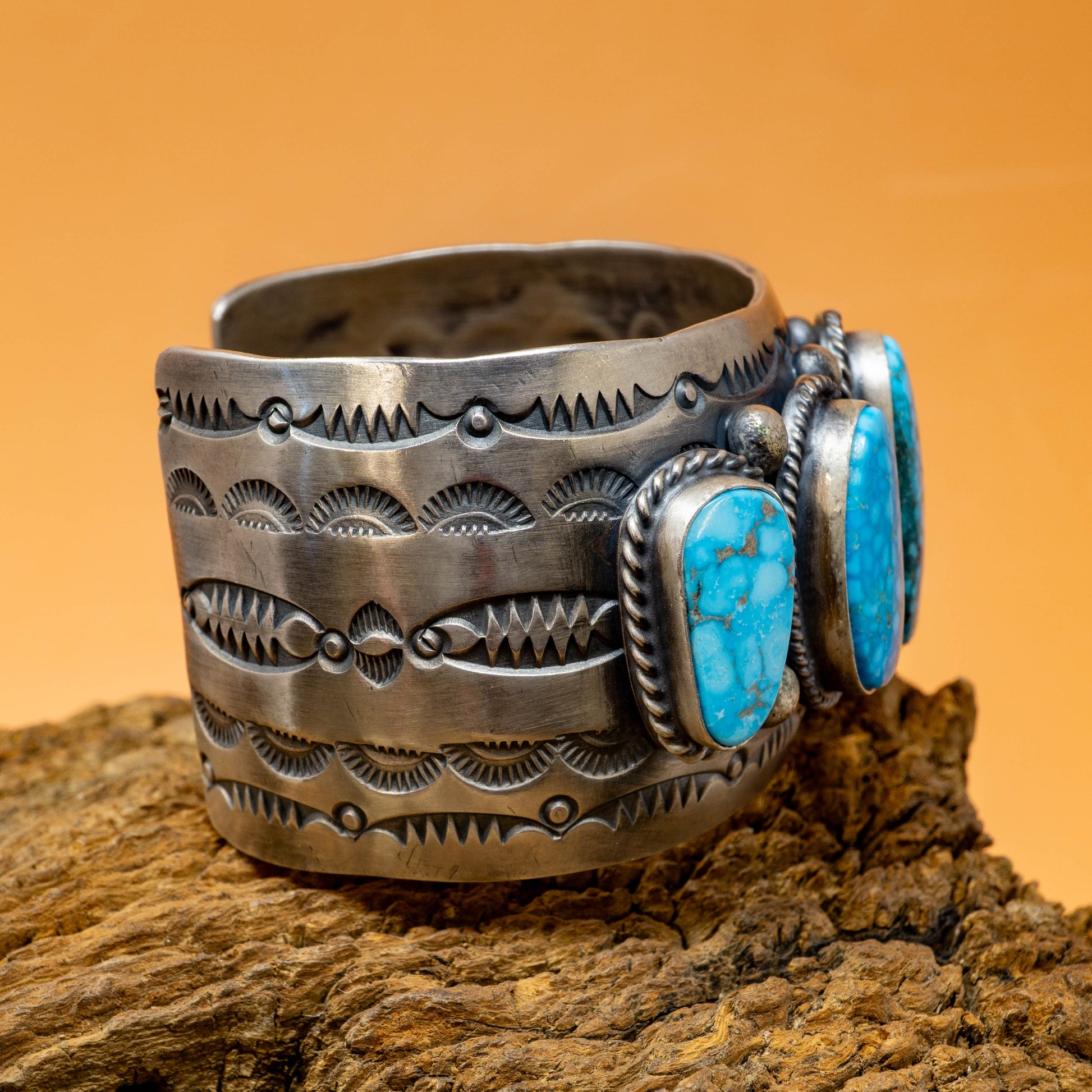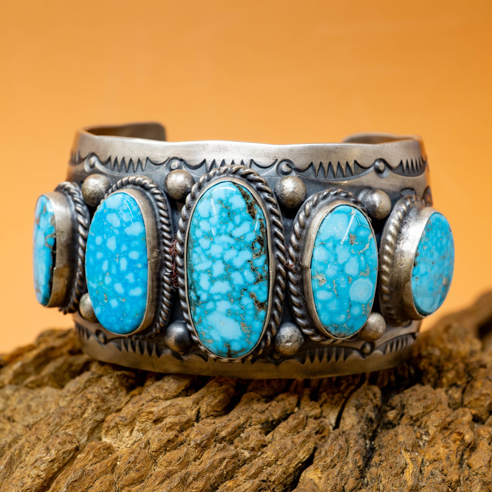 Kingman Turquoise Bracelet Sterling Silver Navajo Cuff Delbert Secatero