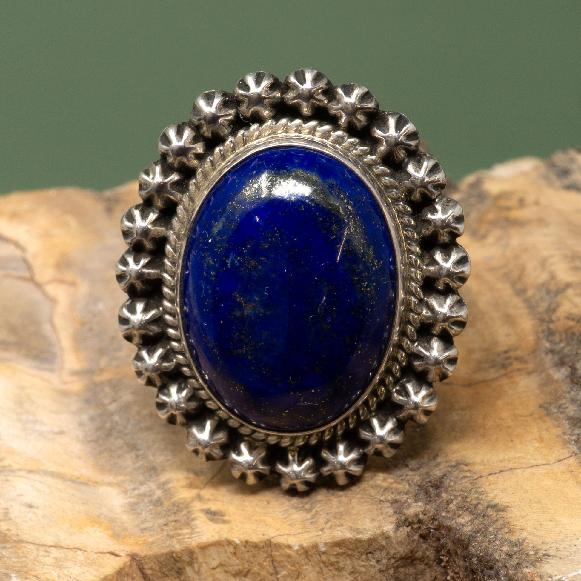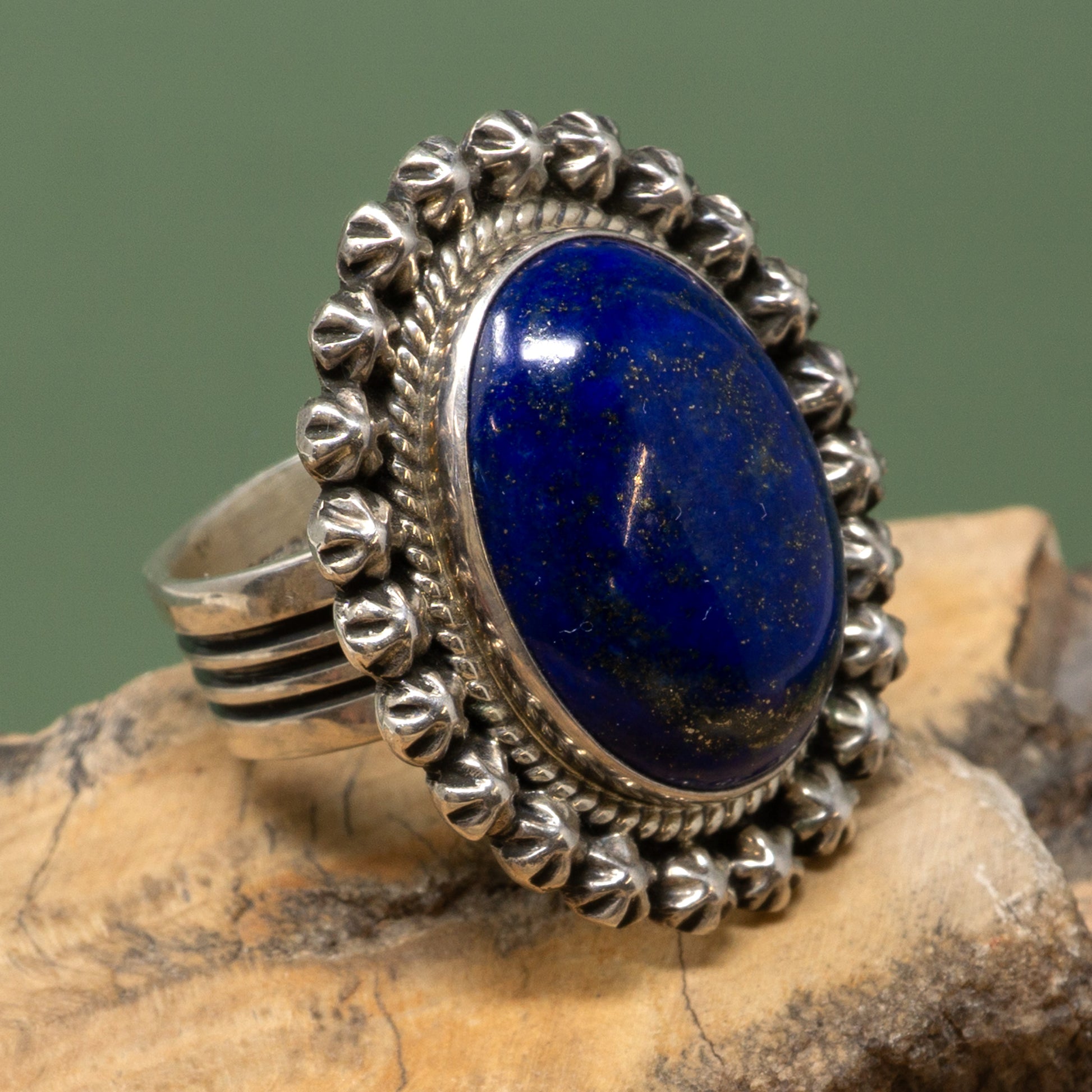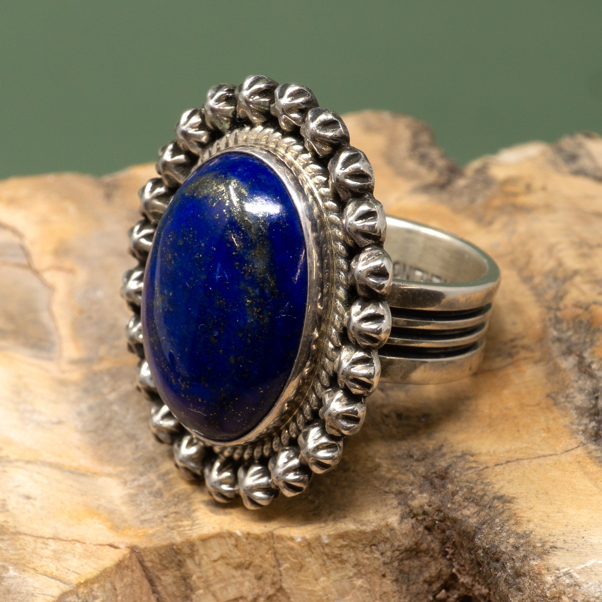Lapis Lazuli Oval Cabochon in Classic Sterling Silver Ring Setting | Size 7