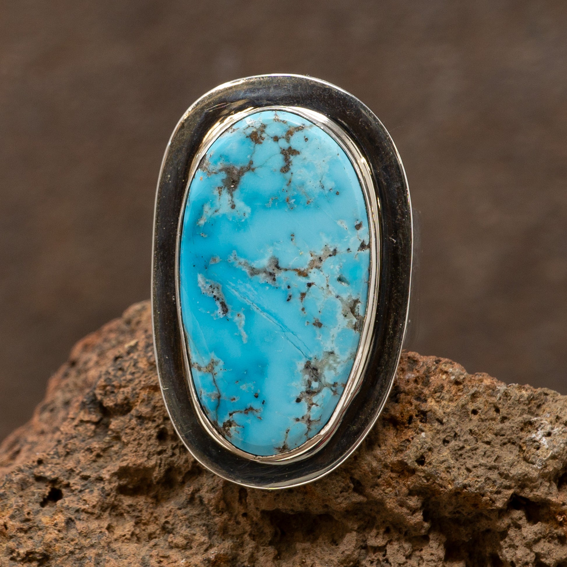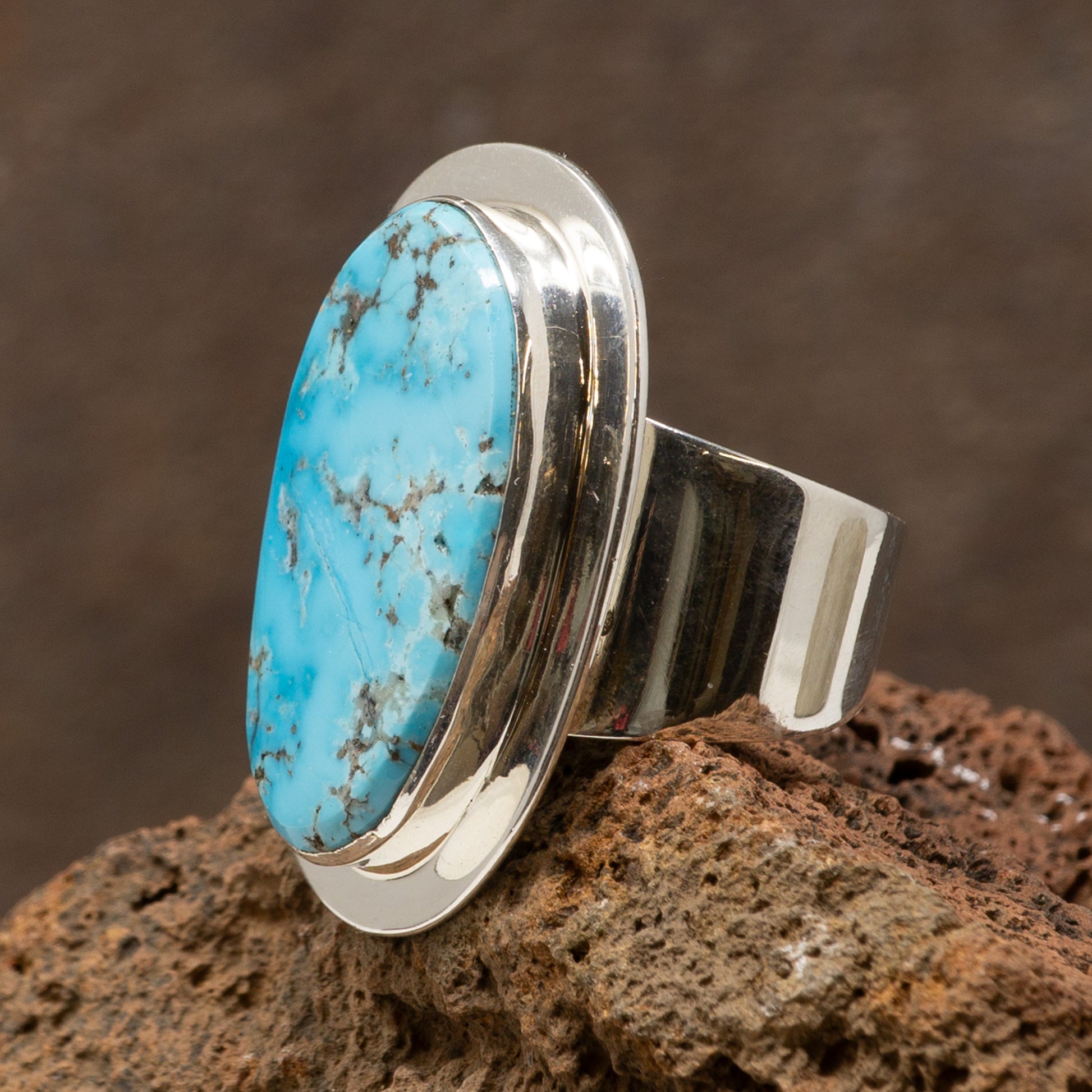 Kingman Turquoise Cabochon Ring - Modern Sterling Silver Setting