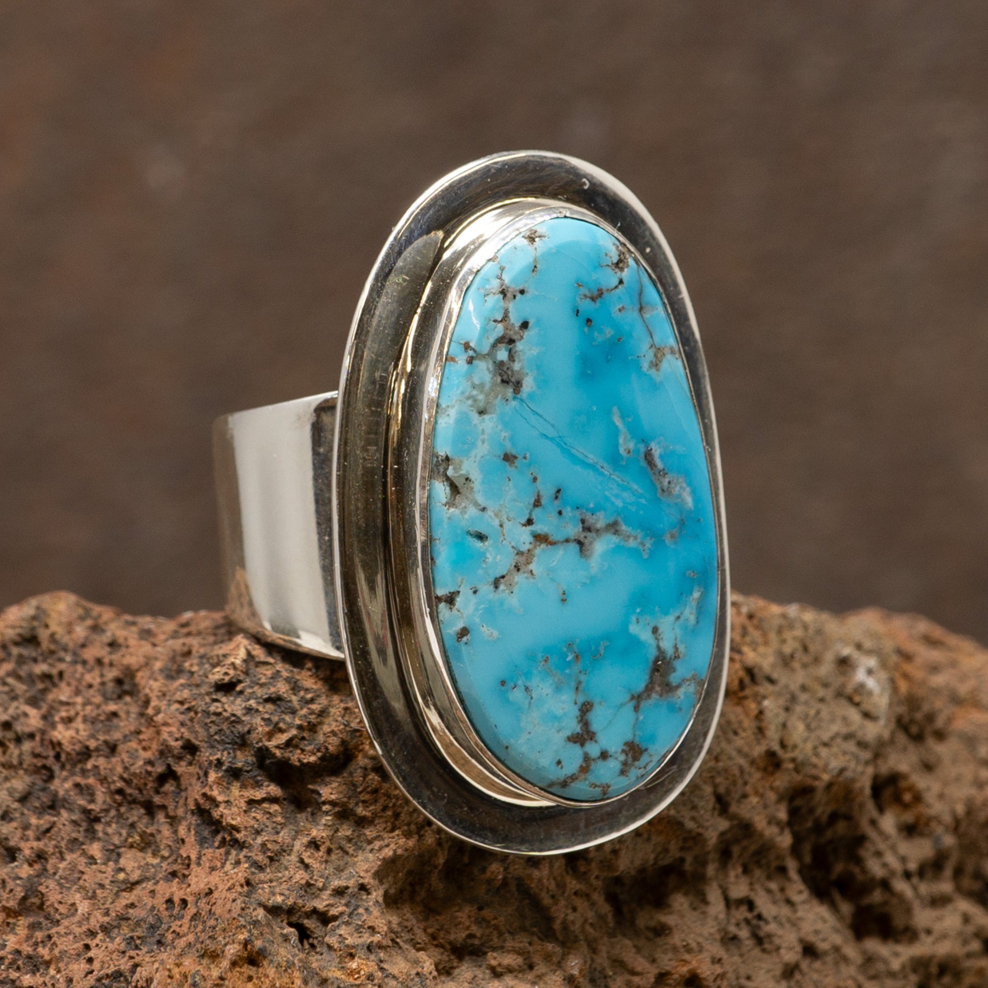 Kingman Turquoise Ring in Modern Setting by Marie Jackson | Size 7.5