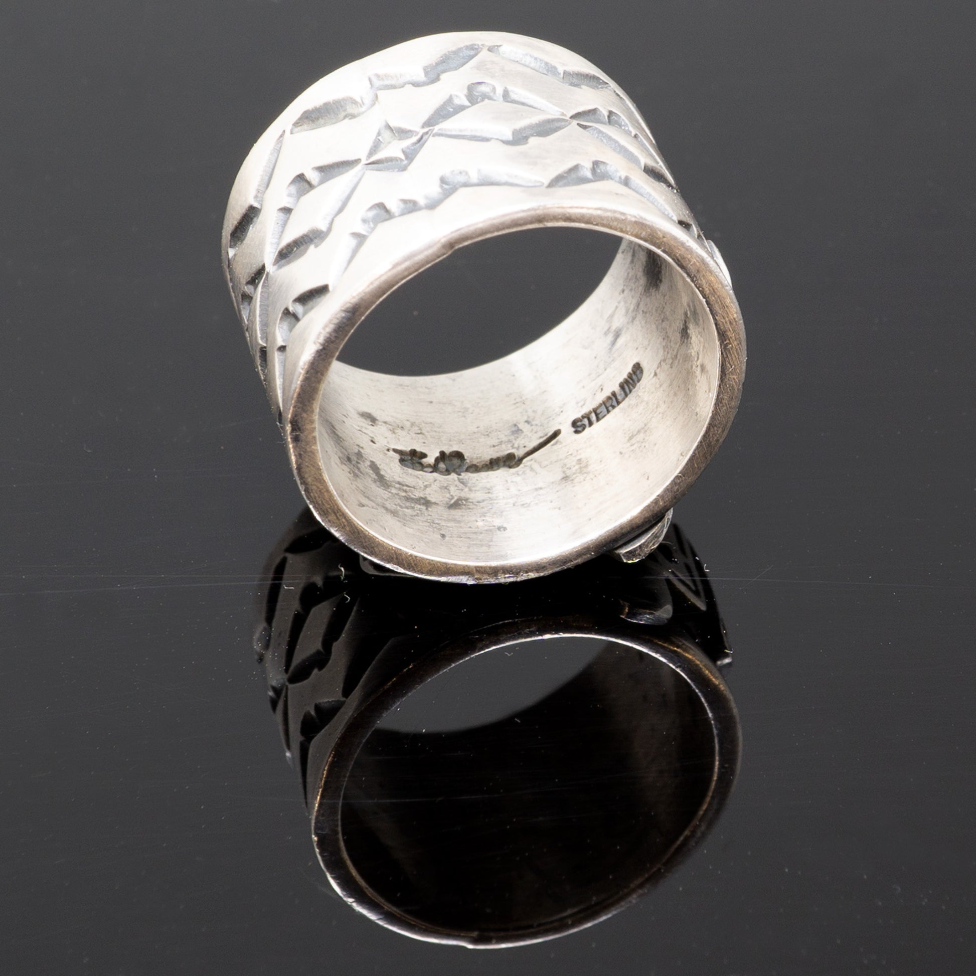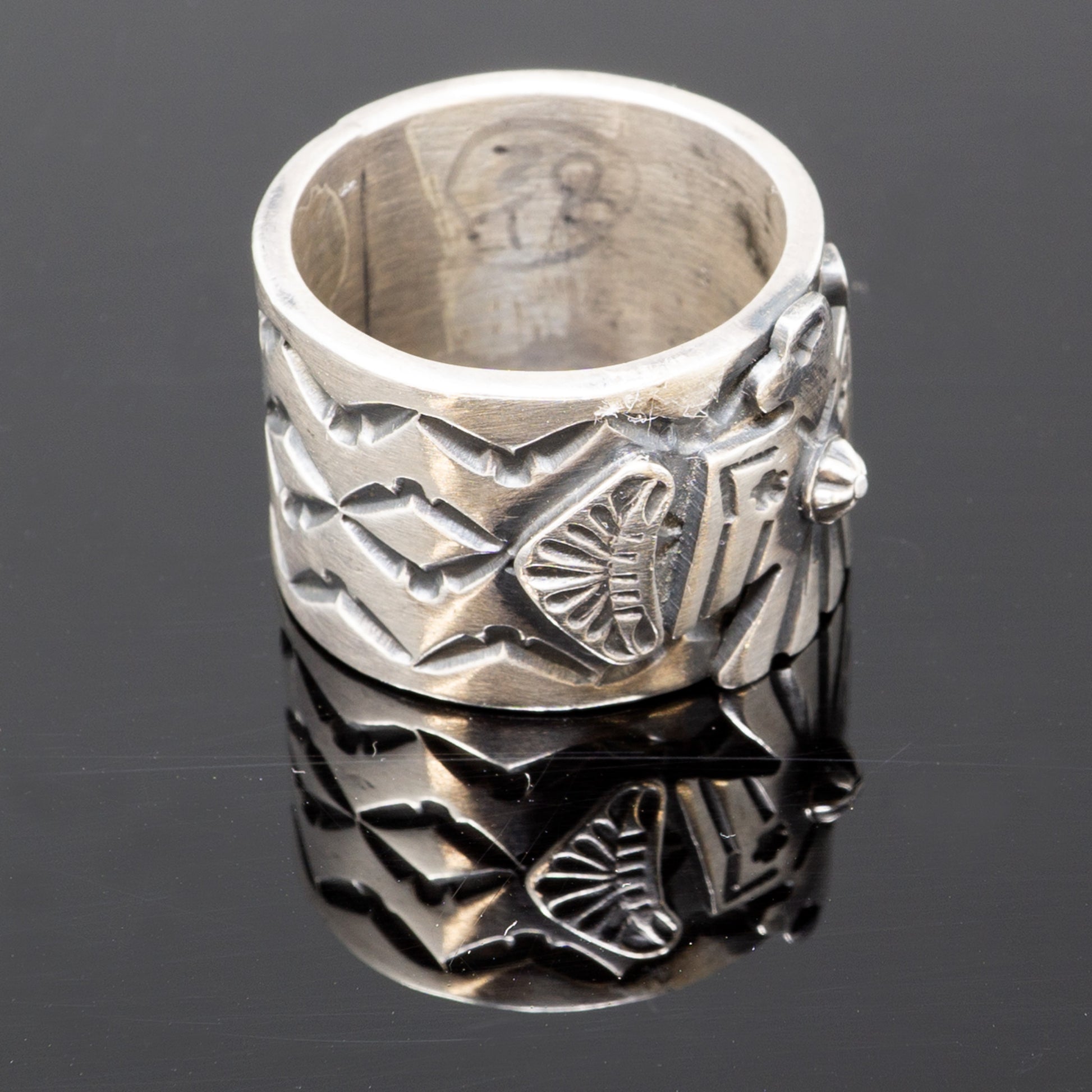 Overlay and Stamped Silver Thunderbird Ring | Size 8.5