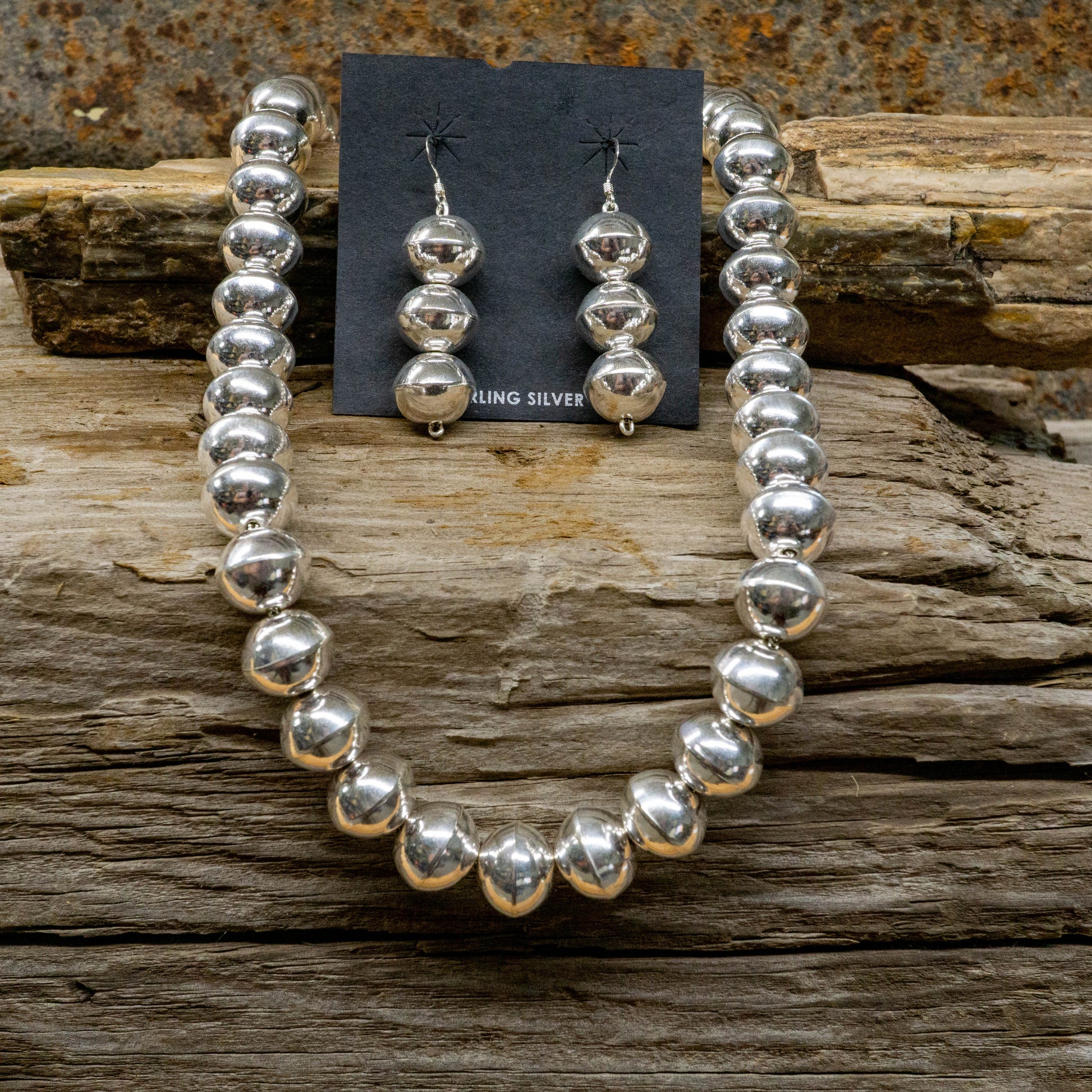 Dazzling Navajo Pearl necklace and earring set polished to a high shine! A spectacular addition to any outfit!