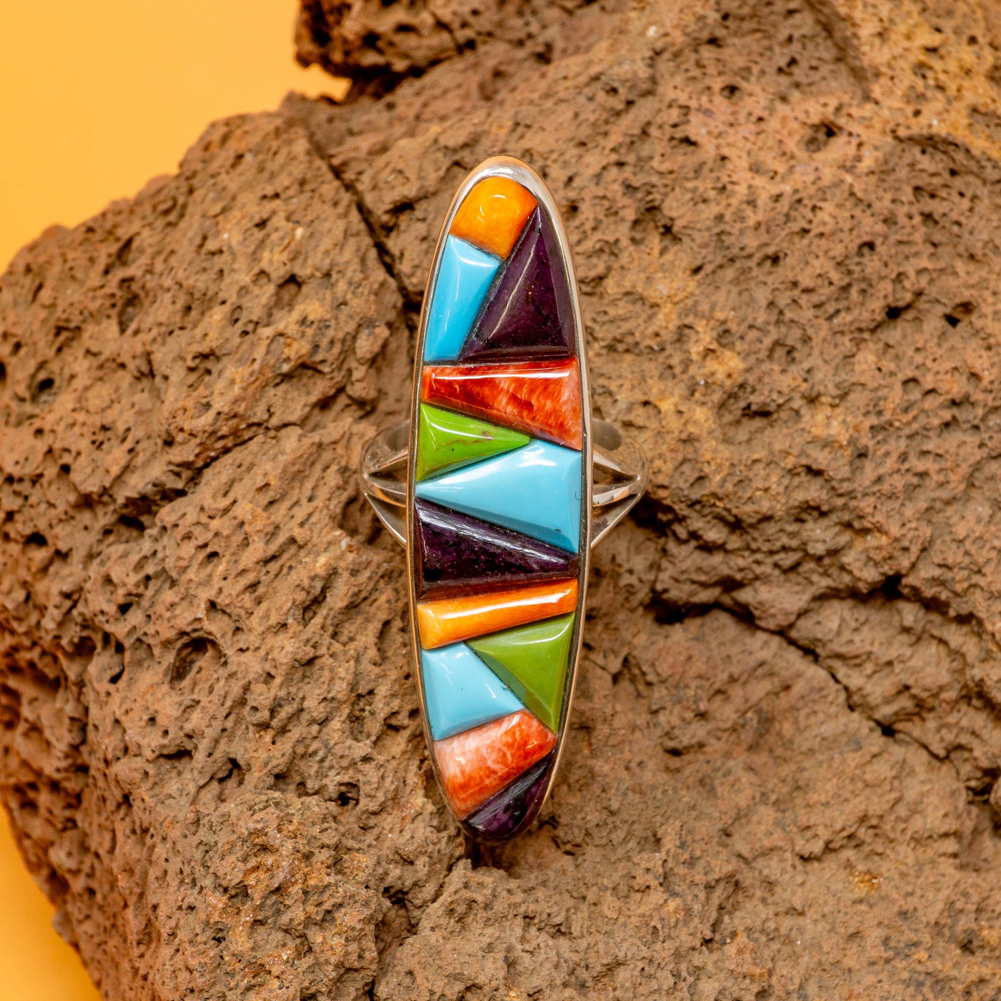 Sleeping Beauty Turquoise Inlay Ring Gaspeite/Spiny Oyster/Sugilite Navajo Size 8