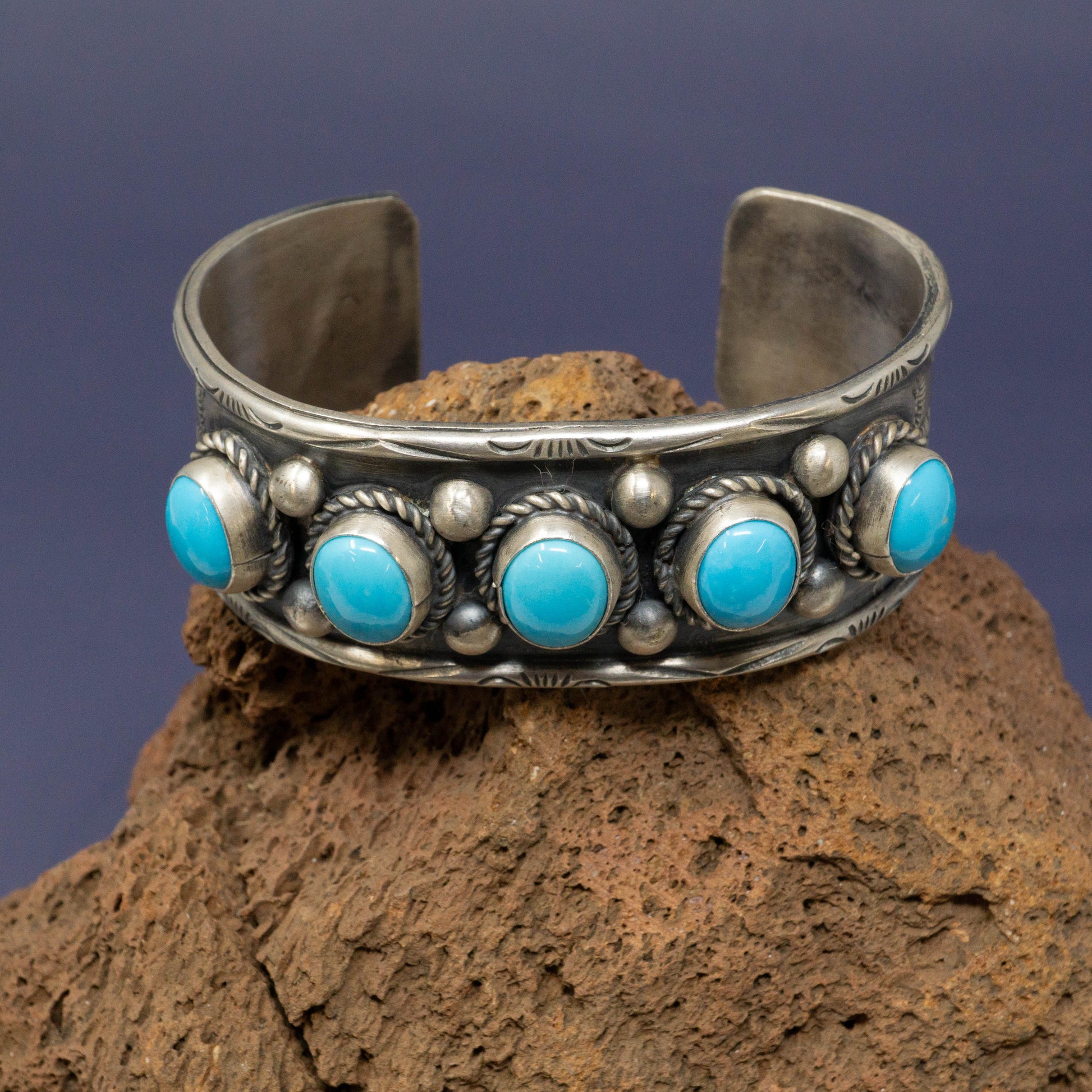 Sleeping Beauty Turquoise & Sterling Silver Navajo Cuff Bracelet