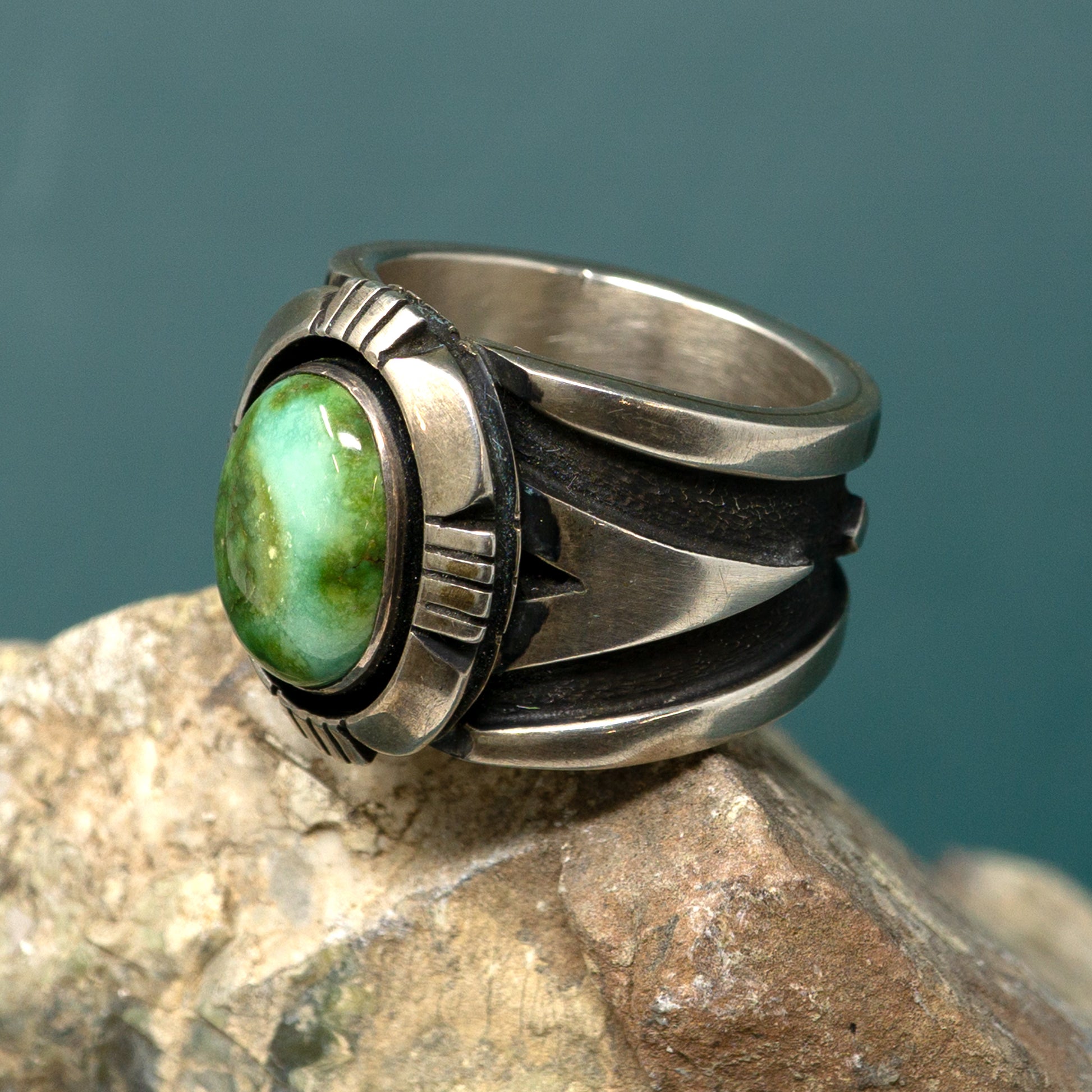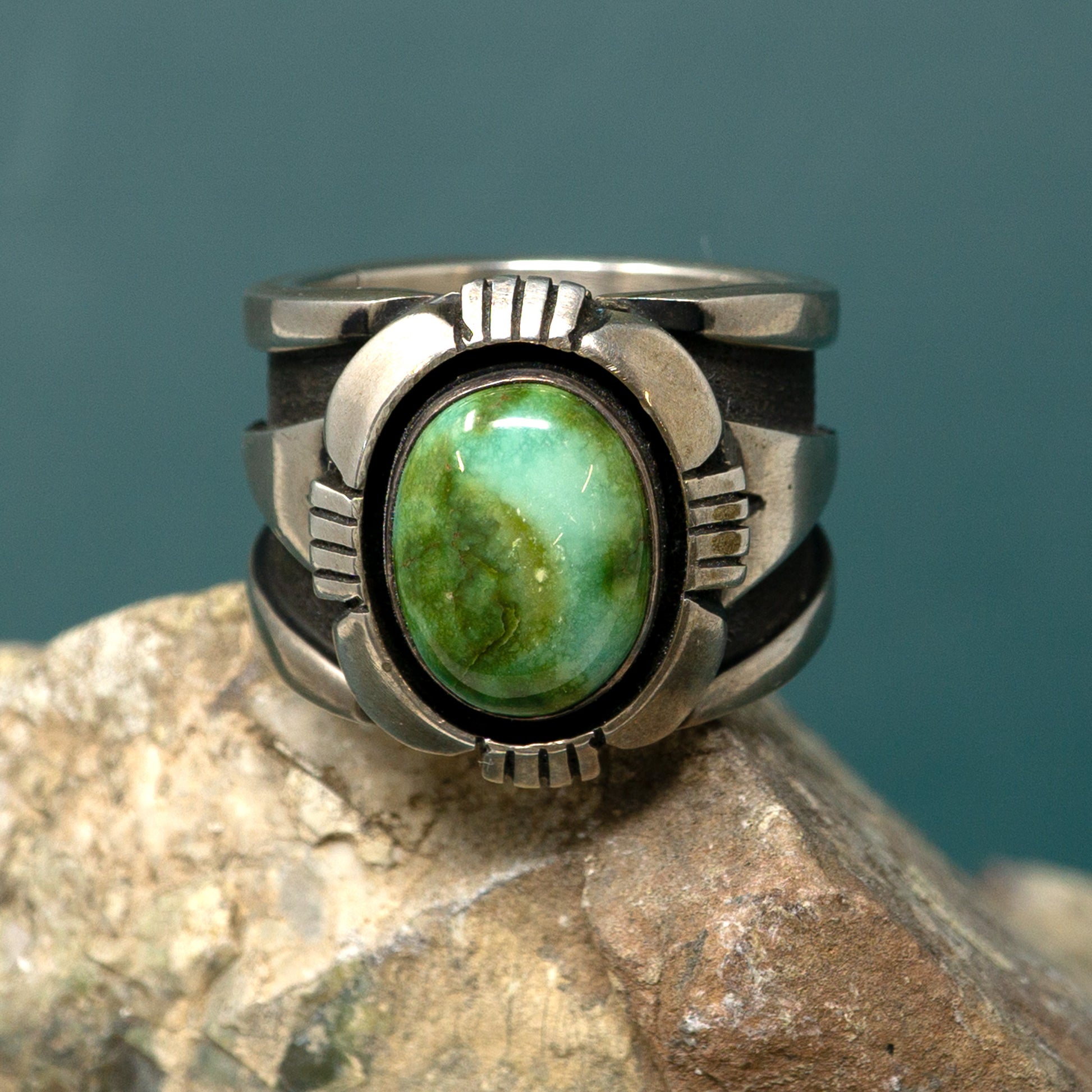 Sonoran Gold Turquoise Ring with Polished Silver Overlay Band