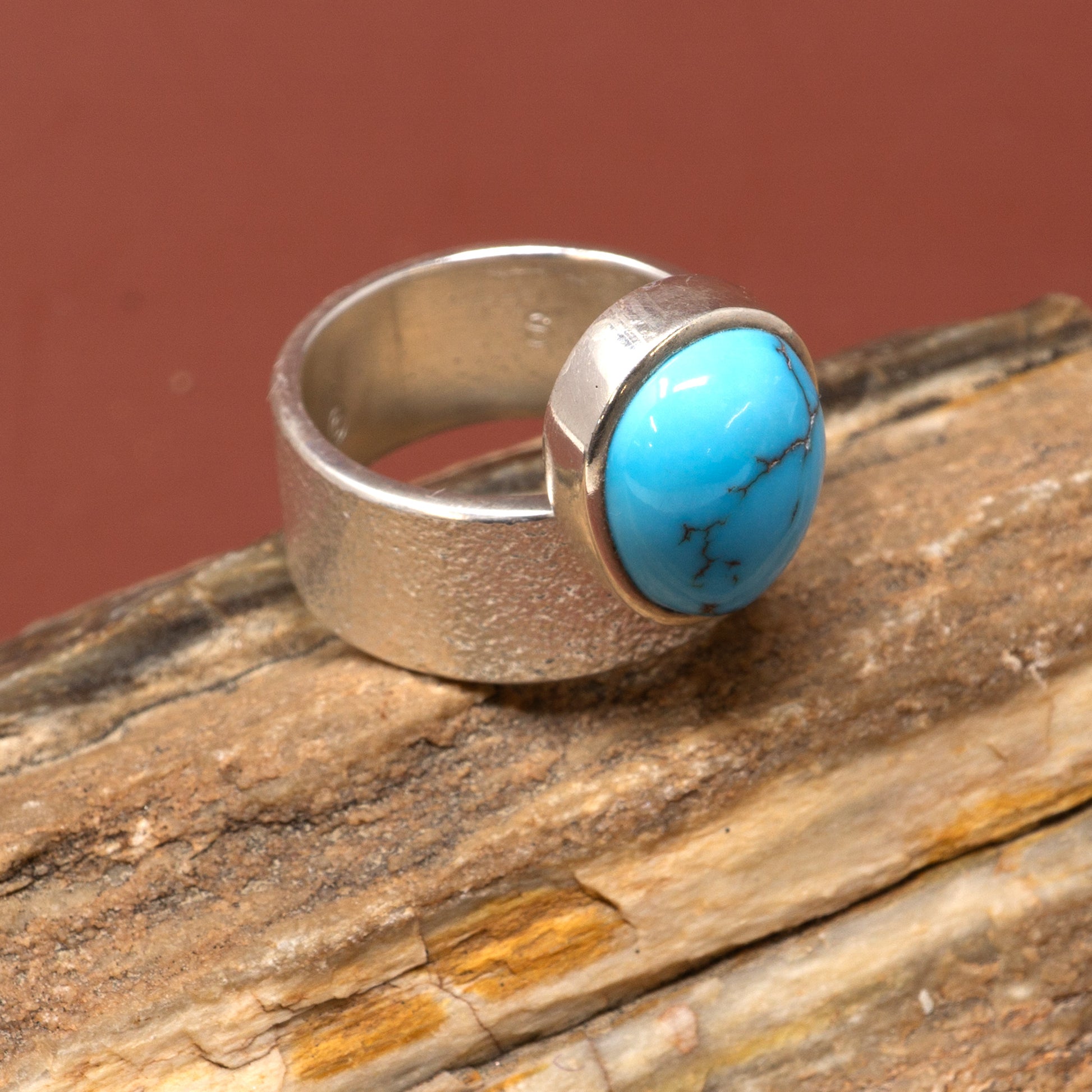 Turquoise Cabochon in Cast Silver Ring by DDB | Size 9