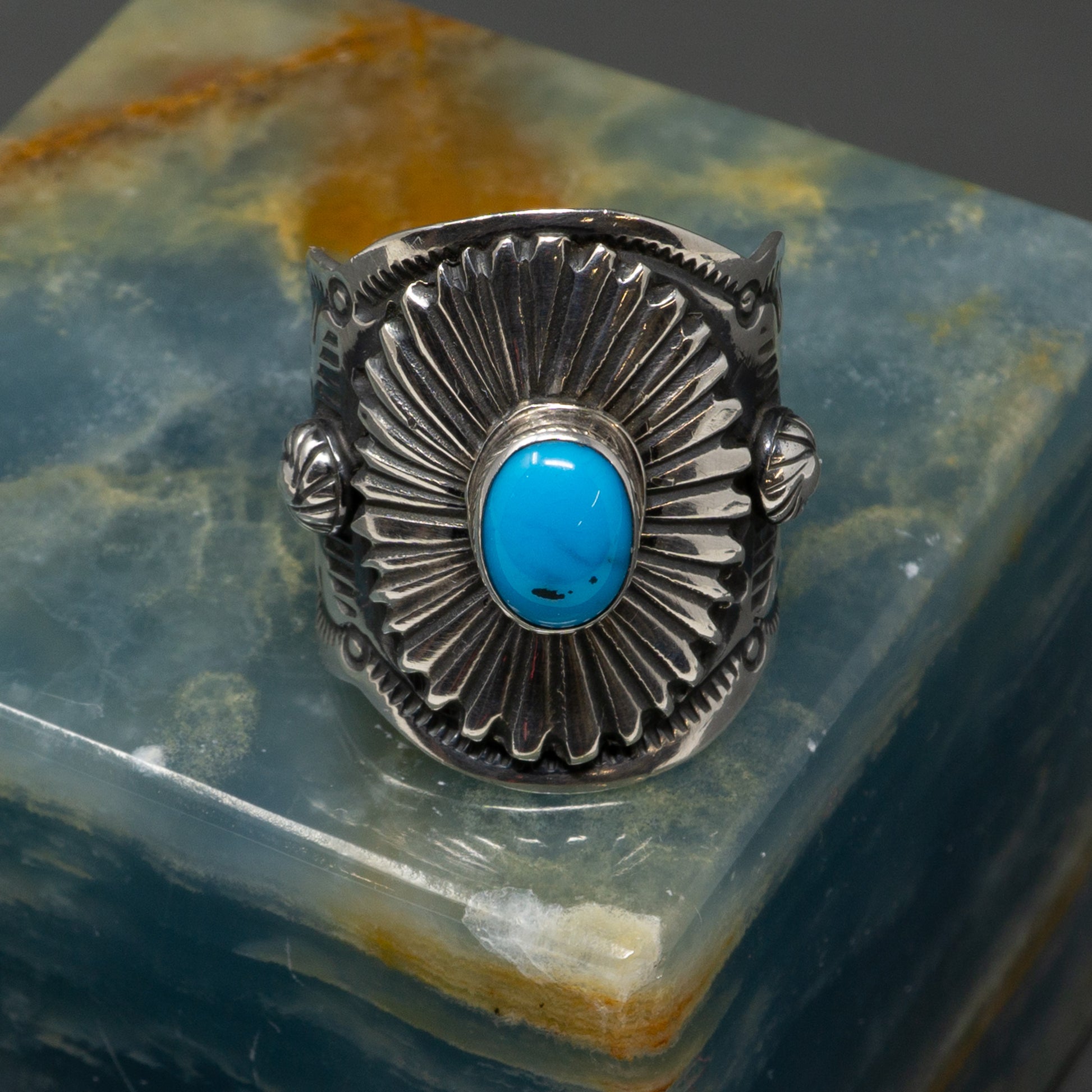 Turquoise Cabochon in Stamped Sterling Silver Ring