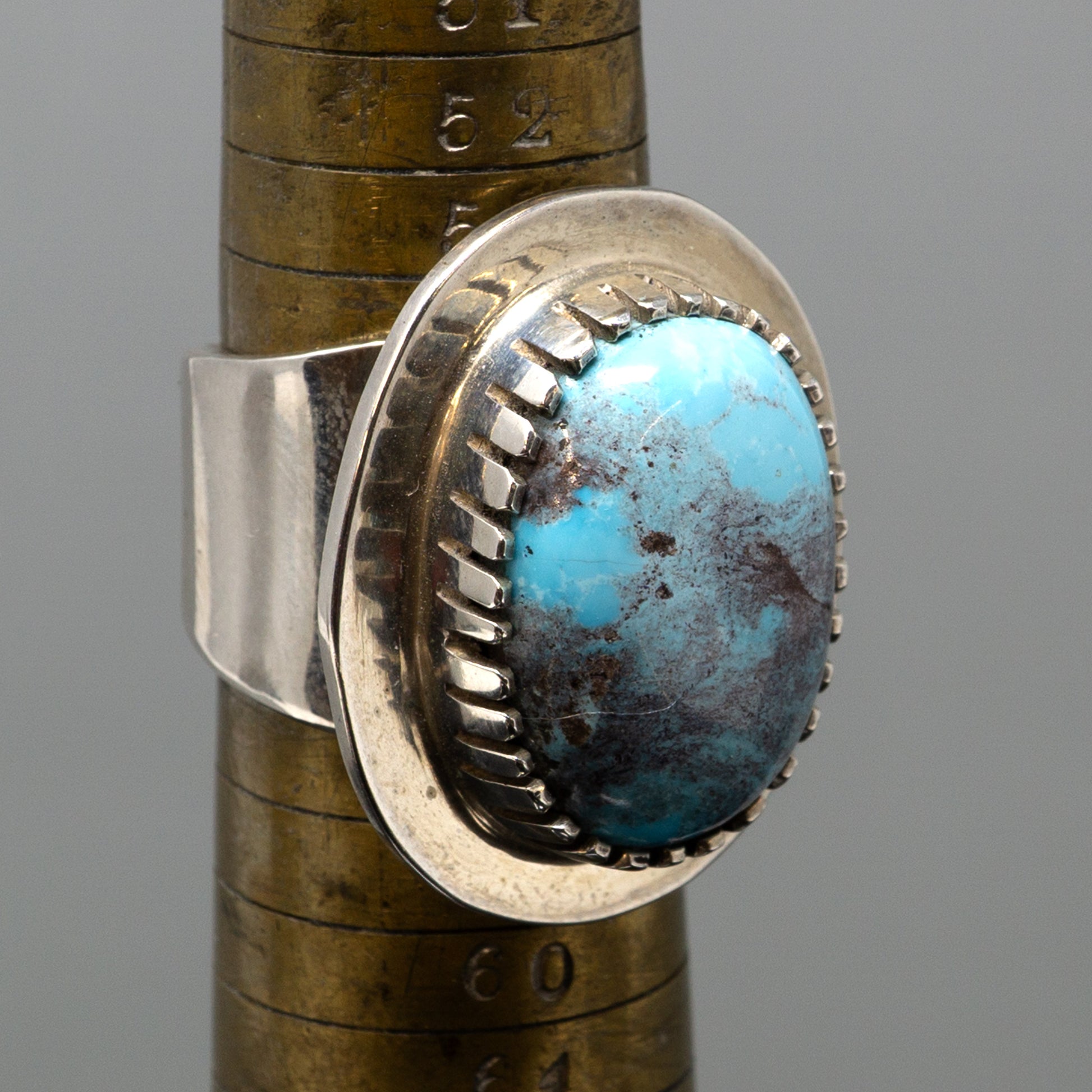 Turquoise Cabochon Ring with Sterling Silver by Tommy Jackson | Size 7.75
