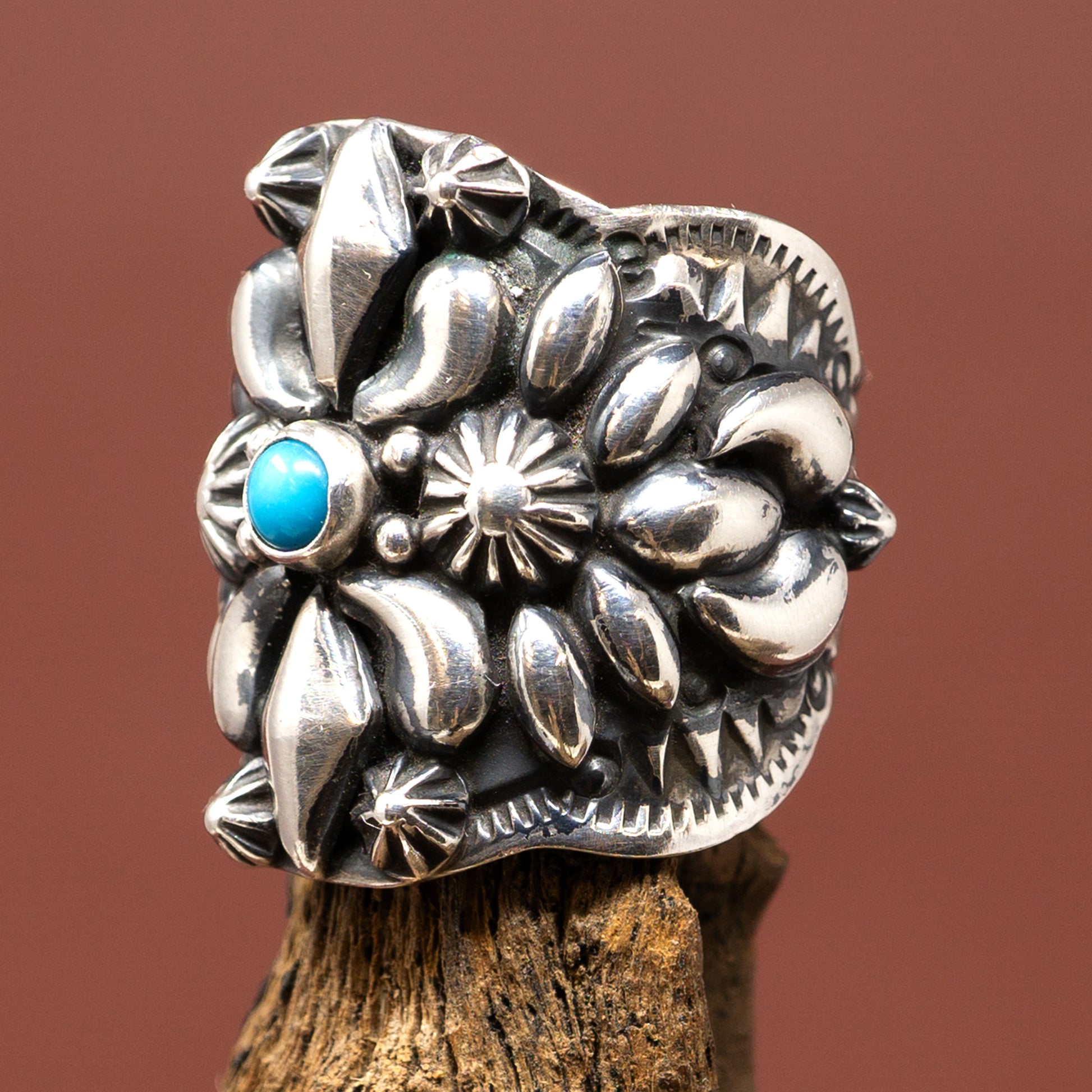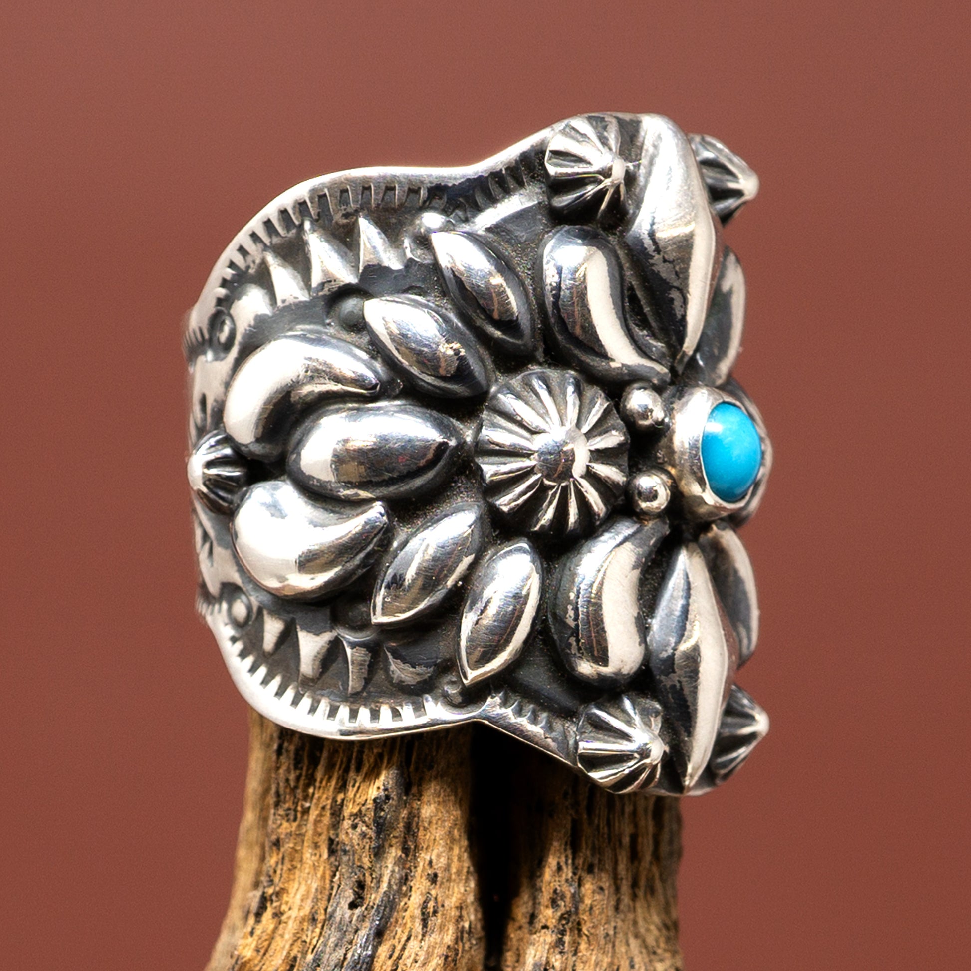 Darryl Becenti, a Navajo, was born 1957 in Gallup New Mexico & was taught silver smithing by his brothers in law, Leroy and David Reeves in 1980.